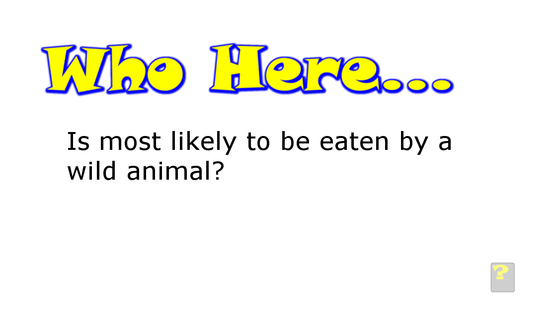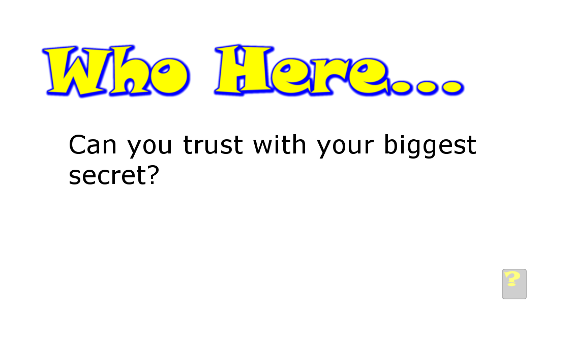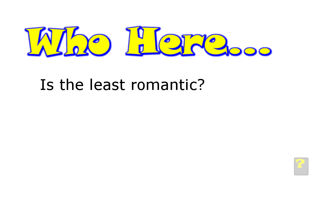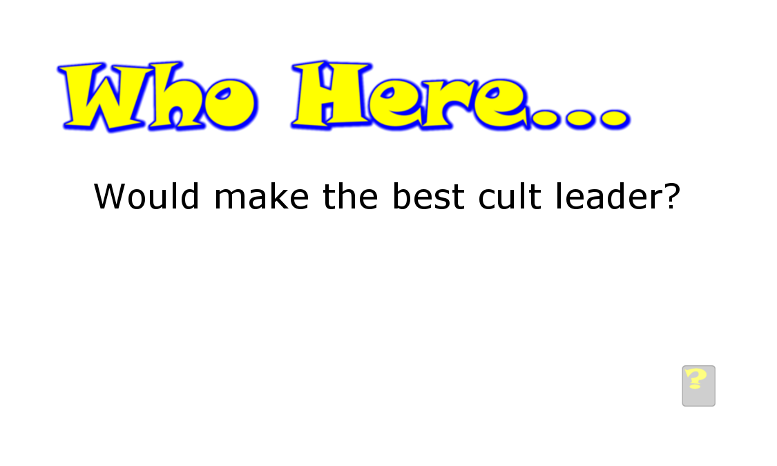 Playing Who Here?™ can result in your party erupting in one or more of the following:
